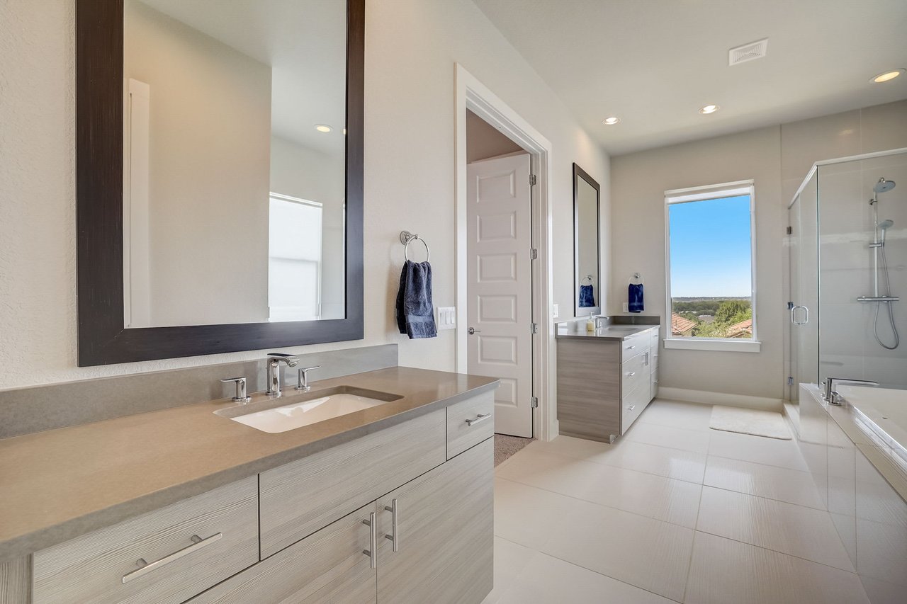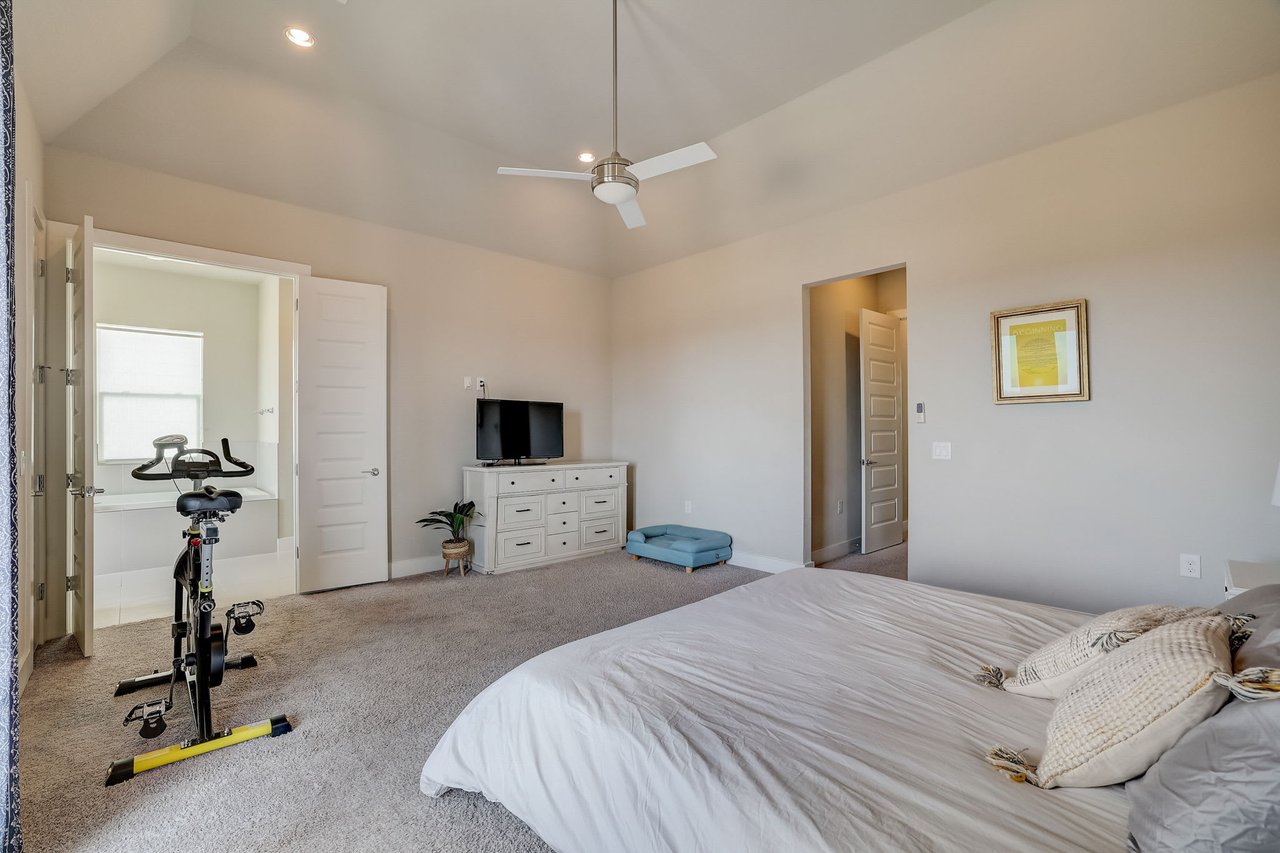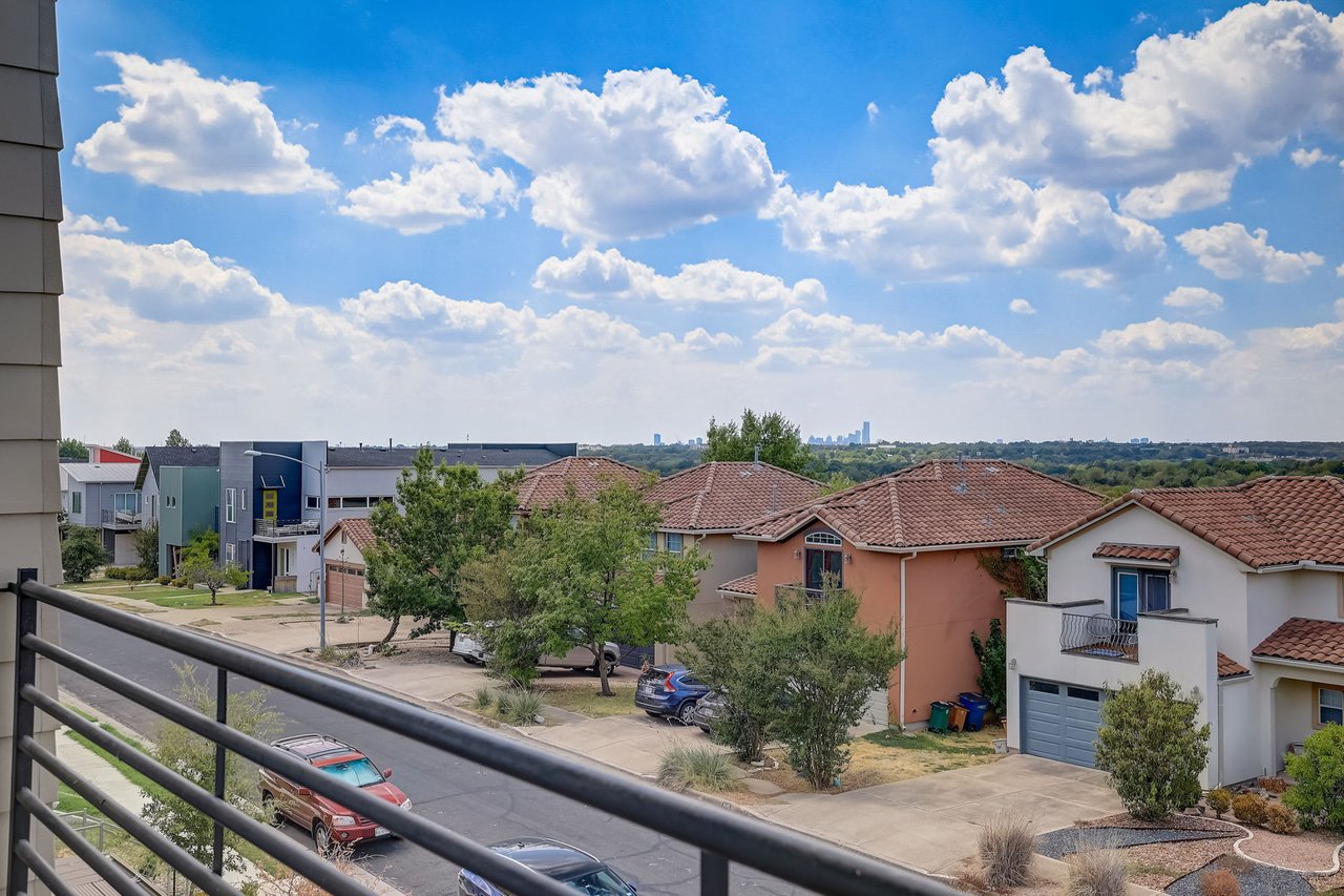 Seamlessly integrated with/ the living area, this well-appointed kitchen creates an ideal setting for hosting gatherings. The expansive primary suite boasts an abundant space accentuated by 12-foot ceilings, while two generously sized walk-in closets offer ample storage for your personal treasures. The ensuite bathroom transforms into a spa-like haven, where a deep soaking tub invites relaxation and a spacious glass walk-in shower amplifies the sense of luxury. Step from the primary suite onto the private covered balcony & be captivated by the breathtaking downtown Austin skyline. Watch as day transitions into evening, transforming the balcony into a serene retreat for sunset admiration over the vibrant cityscape. This well-planned community in NE Austin features modern homes, sidewalks, & a community park replete with/ a playground, picnic area, & nature trails. Positioned conveniently off 183, just 10 minutes from Mueller & 15 minutes from the Domain, downtown, UT, and the airport, this location offers unrivaled convenience. Nearby, tech giants such as Tesla and Samsung contribute to the area's vibrancy.